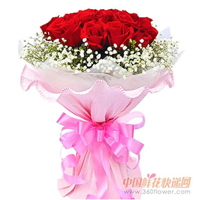 主要花材:1枝粉绣球,16枝粉玫瑰,5枝粉桔梗,11枝粉康乃馨,11枝栀子叶,9枝尤加利叶,粉白色双面包装多层精美,黑色字母缎带蝴蝶结,三脚架一个