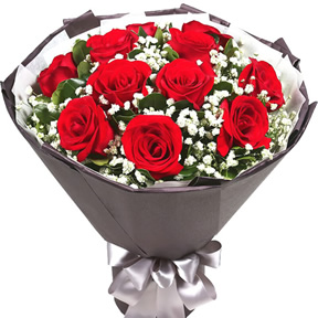 主要花材:1枝粉绣球,16枝粉玫瑰,5枝粉桔梗,11枝粉康乃馨,11枝栀子叶,9枝尤加利叶,粉白色双面包装多层精美,黑色字母缎带蝴蝶结,三脚架一个
